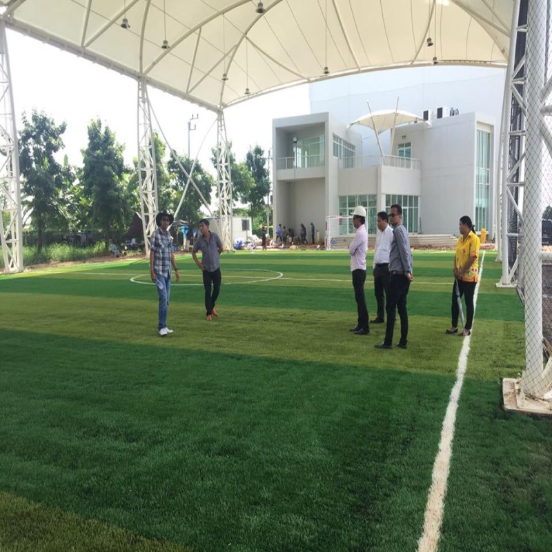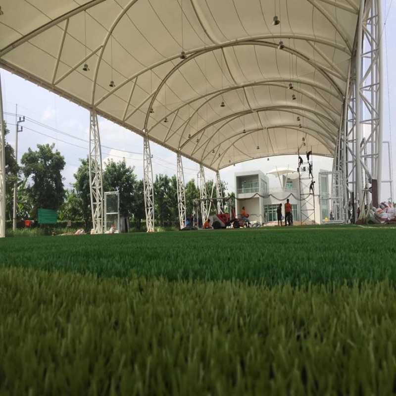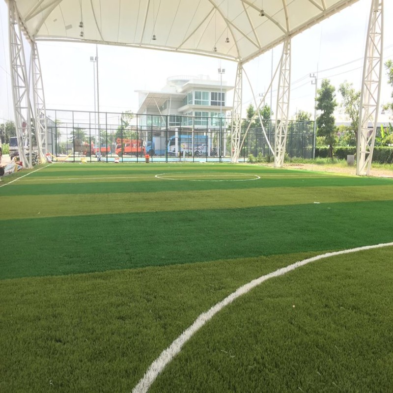 ก่อสร้างสนามกีฬาฟุตซอลหญ้าเทียมและหลังคาผ้าใบแรงดึงสูง
